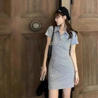 [Ảnh thật cuối] Váy body cúc chéo xẻ tà - Đầm cổ bẻ tôn dáng phong cách trẻ trung cá tính