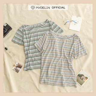 Áo thun ngắn tay cổ tròn kẻ ngang nhỏ MADELEN