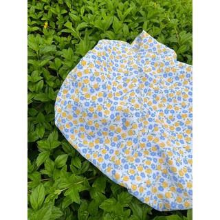 vải thô boi mềm mát may váy áo siêu xinh hoa hồng vàng phối xanh dương