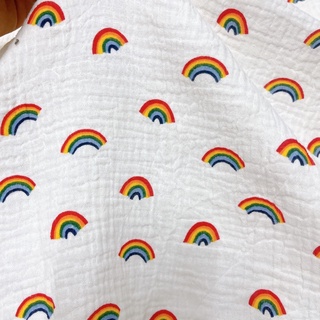 vải may quần áo và khăn tắm cho bé xô muslin cao cấp 2 lớp cầu vồng nền trắng