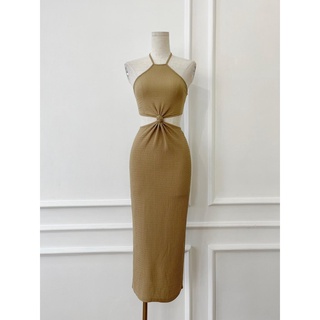 [HÀNG THIẾT KẾ CAO CẤP] Đầm Body Cổ Yếm Xoắn Eo Siêu Tôn Dáng Đi Biển / Đi Tiệc Sang Trọng Màu Đen / Nâu