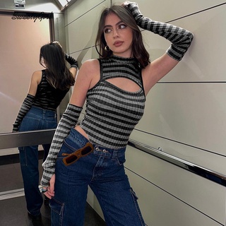 Áo Croptop Tay Dài Cổ Tròn Màu Trơn Thiết Kế Khoét Lỗ Thời Trang Quyến Rũ Dành Cho Nữ 2022