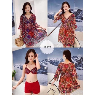 BỘ ĐỒ BƠI 3 CHI TIẾT KÈM ÁO CHOÀNG THỔ CẨM SIÊU ĐẸP MÃ 19173