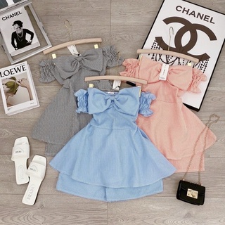 Sét Bộ Áo Trễ Vai Nơ Xốp Sọc, Sét Bộ Đi Chơi Dễ Thương Bigsize Quỳnh Anh Từ 50 kg Đến 100 kg M/L/XL/XXL