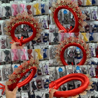 Khắn đống truyền thống 35 tầng đỏ phụ kiện cưới đính hoa nhũ vàng