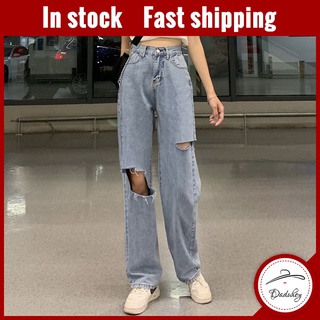 Quần jean DaDuHey mùa hè mới rách mỏng dáng rộng cạp cao thời trang