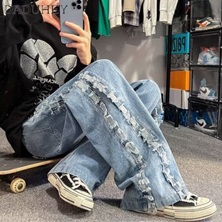 Quần jean dài DADUHEY lưng cao dáng rộng viền thô phối rách phong cách Mỹ thời trang dành cho nữ cỡ lớn