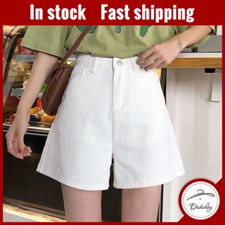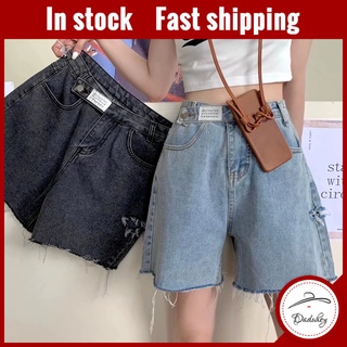 Daduhey Quần short denim ống rộng eo cao thiết kế thời trang phong cách Hàn Quốc