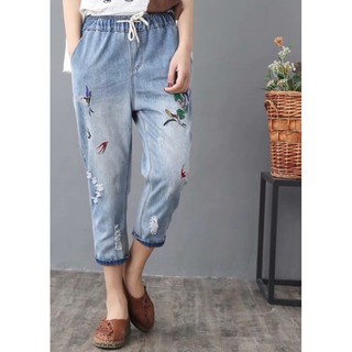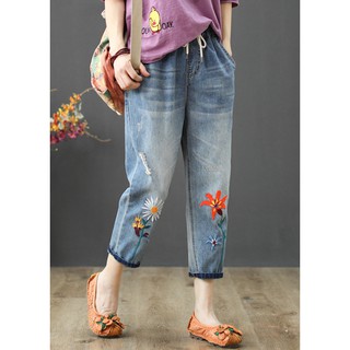 Quần baggy vải bò mềm thêu hoa QB10