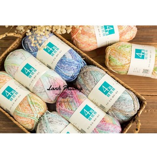 Sợi cotton bóng chập 4 màu loang cuộn 100 gram