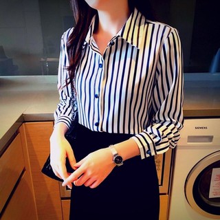 Áo sơ mi nữ dài tay phối sọc màu mẫu VX01 Thời trang nữ thanh lịch Chất kate mềm không nhăn không phai màu