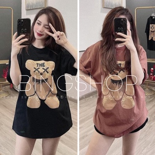 Áo thun tay lỡ unisex form rộng 3158 - áo thun nam nữ Bingshop 3 màu in gấu