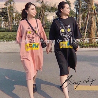 Đầm suông nữ cổ tròn tay lỡ MeoW form rộng vải dày đẹp Bingshop