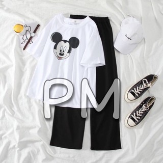 [ Rẻ Vô Địch ] Set bộ quần xuông trơn ống rộng + áo thun mickey tay lỡ dáng rộng