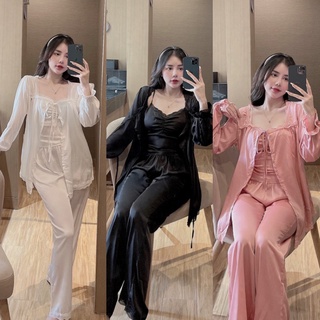 Set 3 mặc nhà 2 dây Sexy tay bo tiểu thư lụa latin Siêu Mát