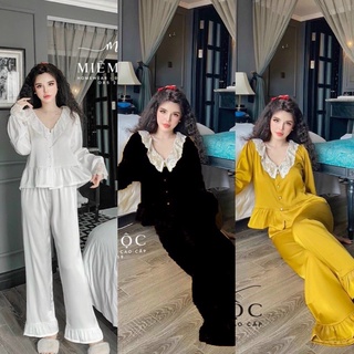Đồ bộ mặc nhà tiểu thư bèo cổ phong cách quảng châu- Chất liệu gấm xước