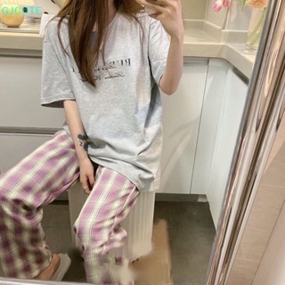 Bộ Đồ Ngủ Áo Hai Dây Phối Quần Dài Sọc Ca Rô Thời Trang Xinh Xắn Cho Nữ