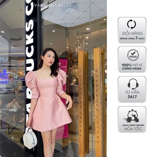 Đầm nữ VANANHSCARLET tay bồng đính nơ V047S23