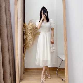 ( Ảnh thật ) 16201 Váy chun ngực tay bồng