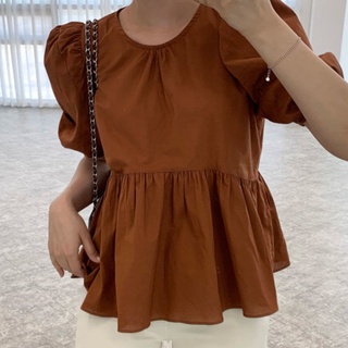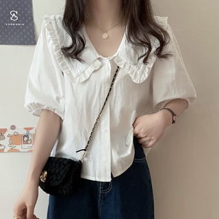 Áo Sơ Mi Tay Ngắn Phiên Bản Hàn Quốc 165871 Áo Sơ Mi Cổ Tròn Tay Phồng Dáng Rộng Thời Trang Cổ Điển Cho Nữ