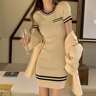 Áo Thun Polo Dệt Kim Tay Ngắn Màu Sắc Tương Phản Phong Cách Hàn Quốc Thời Trang Mùa Hè Cho Nữ