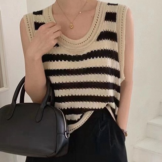 Áo Len Dệt Kim Sọc Rỗng 185245 Áo Hai Dây Cổ Chữ U Thời Trang Mùa Hè Phong Cách Retro