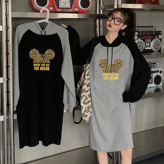 Đầm tay dài có mũ trùm đầu in họa tiết hoạt hình xinh xắn thời trang cho nữ