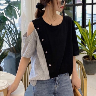 Áo thun tay ngắn cổ tròn họa tiết kẻ sọc hợp thời trang
