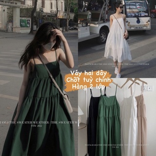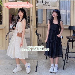 Váy 2 dây voan tơ ulzzang 2 lớp, váy hai dây xuông maxi đi biển (ảnh thật/video)