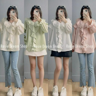 Áo sơ mi cổ vuông viền bèo 3 tầng chất tơ đũi mềm, áo kiểu VINTAGE xinh