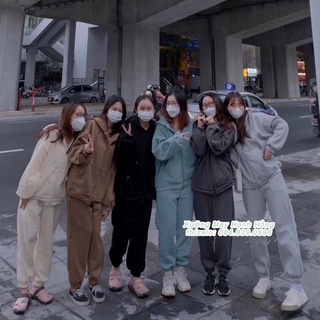 Set áo hoodie trơn có mũ kéo khoá nỉ bo gấu form oversize hàng Quảng Châu