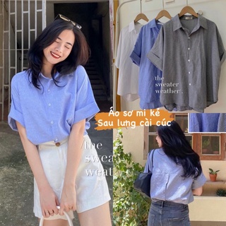 Áo sơ mi kẻ sau lưng cài cúc, Áo sơ mi xẻ cúc lưng cách điệu phong cách Hàn Quốc