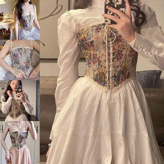 Áo nịt ngực hai dây dáng ngắn ôm sát in họa tiết hoa quyến rũ phong cách cổ điển thanh lịch dành cho nữ