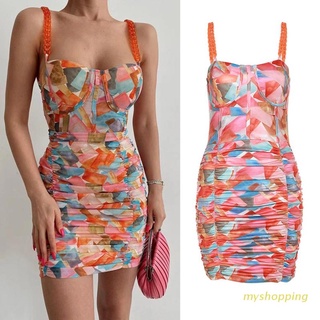 Đầm hai dây dáng ôm họa tiết hình học nhiều màu phong cách cổ điển quyến rũ cho nữ