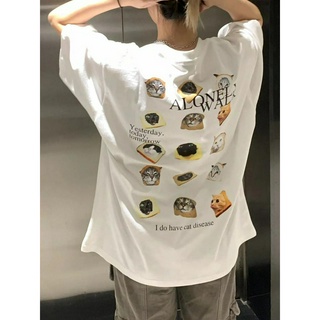 Áo Thun Cotton Dáng Rộng Ngắn Tay In Hình Đơn Giản Màu Sắc Tương Phản Thời Trang Nữ 61225