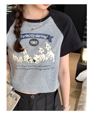 Áo Thun Ngắn Mỏng Cổ Tròn In Hoạt Hình Màu Tương Phản Phong Cách Mới 63283