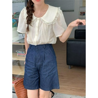 Áo Sơ Mi Phối Ren Ngắn Tay Phong Cách Hàn Quốc Dễ Thương 54870 2 Màu Lựa Chọn