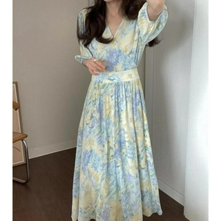 Đầm Chiffon Cổ V In Hoa Phong Cách Hàn Quốc Quý Phái 64273