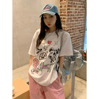 Áo Thun Cotton Dáng Rộng Ngắn Tay In Hoạt Hình Thời Trang Mùa Hè Cá Tính 6308