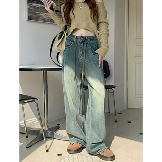 Quần Denim Ống Rộng Phối Dây Rút Phong Cách Retro 55787