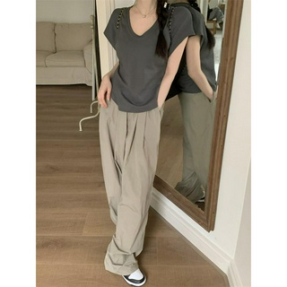 Áo Thun Nữ Tay Ngắn Cổ Chữ v Eo Hẹp Chất Liệu Cotton Thời Trang Mùa Hè 63517