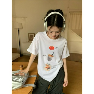 Áo Thun Cotton Cổ Tròn Dáng Rộng Ngắn Tay In Hoạt Hình Thời Trang Hè Cá Tính 63940