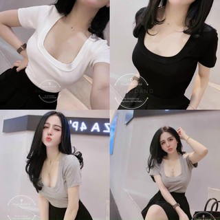 Áo kiểu tay ngắn body cổ U trơn cực xinh , chất thun bozip dày dặn mềm mịn