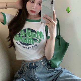 Áo kiểu croptop in chữ fins cực xinh , chất thun lụa mềm mịn co giãn