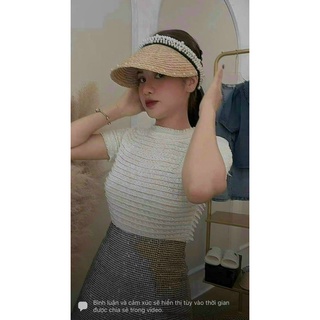 Áo 3 lỗ sọc ngang ren kiểu dáng croptop cực xinh , chất len dày dặn mềm mịn