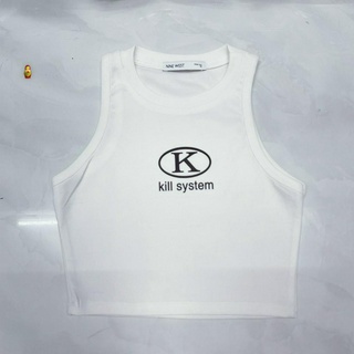 áo croptop ba lỗ khoét nách in chữ k ở ngực