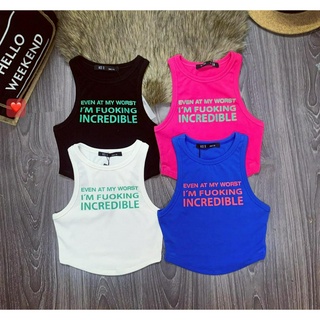 Áo kiểu croptop 3 lỗ vạt bầu in chữ i'm cực xinh , chất thun bozip mềm mịn