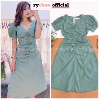 Đầm Xòe Mint Nhún Trước Cổ V [ẢNH THẬT CUỐI] - DX465