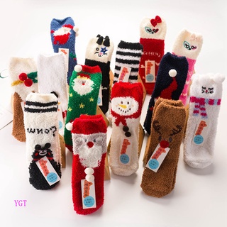 Ygt Vớ Nhung San Hô Dày Ấm Áp Mùa Đông In Hình Hươu 3D Dễ Thương Làm Quà Tặng Giáng Sinh Cho Nữ