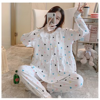Đồ Ngủ Nữ Pijama Tiểu Thư Chất Cotton Hàn Hình Dễ Thương Bộ Mặc Nhà Dài Tay Thu Đông Hàng Quảng Châu SAQ238